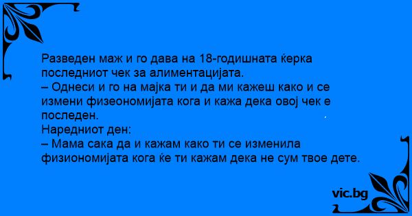 – Однеси и го на мајка ти и да ми кажеш како и се измени физеономијата кога и кажа дека овој чек е последен.