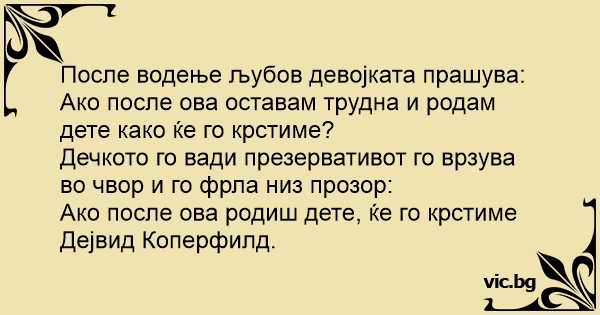 Ако после ова родиш дете, ќе го крстиме Дејвид Коперфилд.