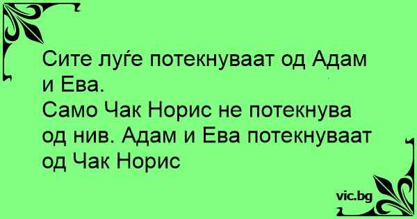 Само Чак Норис не потекнува од нив. Адам и Ева потекнуваат од Чак Норис