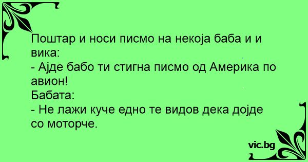 - Ајде бабо ти стигна писмо од Америка по авион!