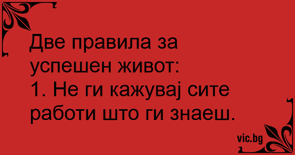 Две правила за успешен живот: