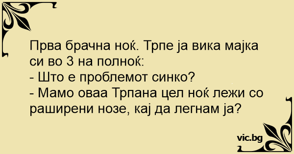 Прва брачна ноќ. Трпе ја вика мајка си во 3 на полноќ: