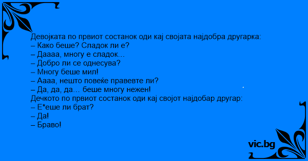 Дечкото по првиот состанок оди кај својот најдобар другар: