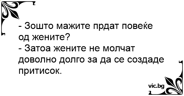 - Varför fjärtar män mer än kvinnor? - För att kvinnor inte håller tyst länge nog för att bygga upp ett tryck.