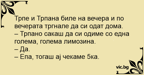 Трпе и Трпана биле на вечера и по вечерата тргнале да си одат дома.