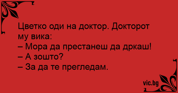 Цветко оди на доктор. Докторот му вика: