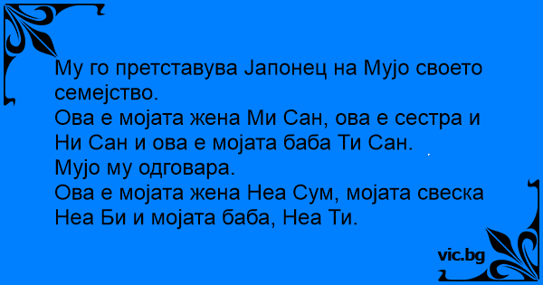 Ова е мојата жена Ми Сан, ова е сестра и Ни Сан и ова е мојата баба Ти Сан.