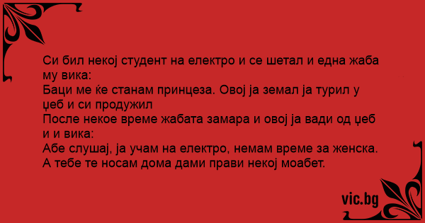 Си бил некој студент на електро и се шетал и една жаба му вика: