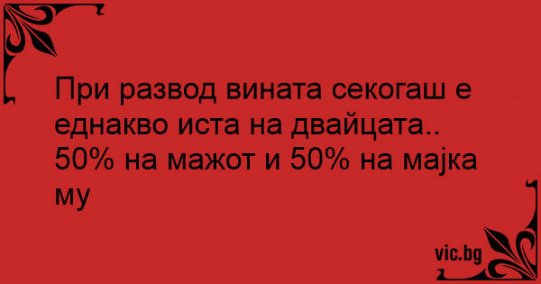 При развод вината секогаш е еднакво иста на двайцата..