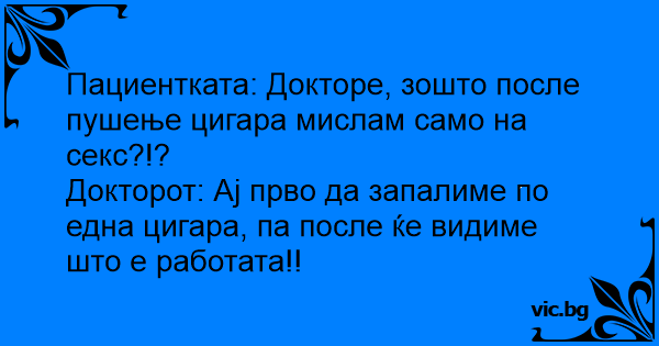 Пациентката: Докторе, зошто после пушење цигара мислам само на cekc?!?