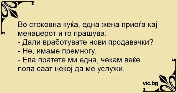 Во стоковна куќа, една жена приоѓа кај менаџерот и го прашува:
