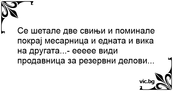 Се шетале две свињи и поминале покрај месарница и едната и вика на другата...- еееее види продавница за резервни делови...