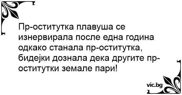 Пр-оститутка плавуша се изнервирала после една година одкако станала пр-оститутка, бидејки дознала дека другите пр-оститутки земале пари!