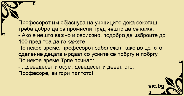 - Ако е нешто важно и сериозно, подобро да изброите до 100 пред тоа да го кажете.