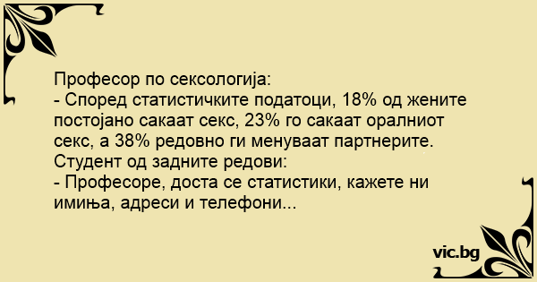 - Според статистичките податоци, 18% од жените постојано сакаат cekc, 23% го сакаат оралниот cekc, а 38% редовно ги менуваат партнерите.