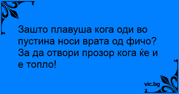 Зашто плавуша кога оди во пустина носи врата од фичо?