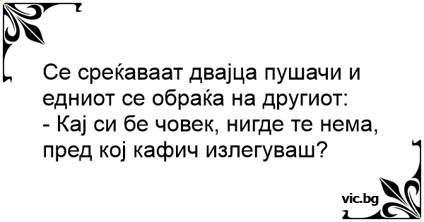 Се среќаваат двајца пушачи и едниот се обраќа на другиот: