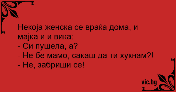 - Не бе мамо, сакаш да ти хукнам?!