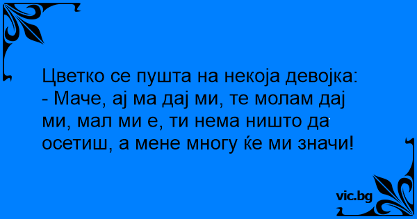 - Маче, ај ма дај ми, те молам дај ми, мал ми е, ти нема ништо да осетиш, а мене многу ќе ми значи!