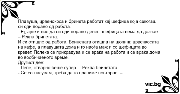 - Еј, ајде и ние да си оди порано денес, шефицата нема да дознае. – Рекла бринетата.