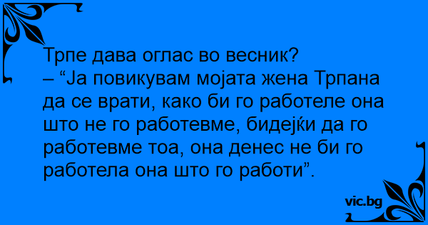 – “Ја повикувам мојата жена Трпана да се врати, како би го работеле она што не го работевме, бидејќи да го работевме тоа, она денес не би го работела она што го работи”.