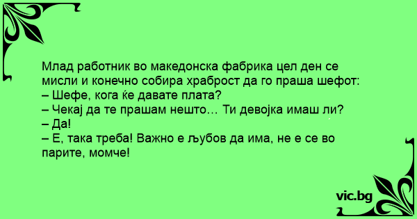 Млад работник во македонска фабрика цел ден се мисли и конечно собира храброст да го праша шефот: