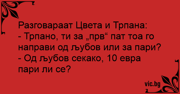 - Трпано, ти за „прв“ пат тоа го направи од љубов или за пари?