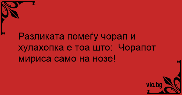 Разликата помеѓу чорап и хулахопка е тоа што: Чорапот мириса само на нозе!