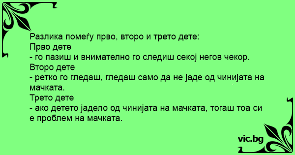- ако детето јадело од чинијата на мачката, тогаш тоа си е проблем на мачката.