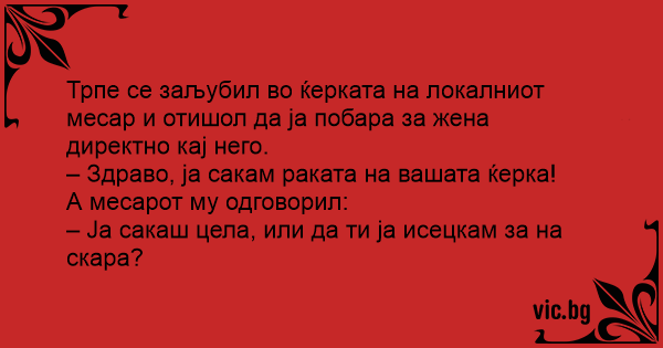 Трпе се заљубил во ќерката на локалниот месар и отишол да ја побара за жена директно кај него.