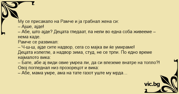 – Ч-ш-ш, ајде сите надвор, сега со мајка ви ќе умираме!