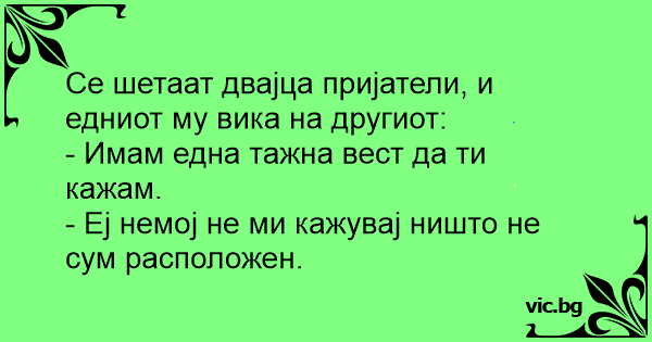 Се шетаат двајца пријатели, и едниот му вика на другиот: