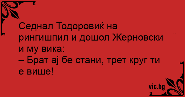 Седнал Тодоровиќ на рингишпил и дошол Жерновски и му вика: