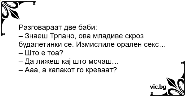 – Знaеш Трпано, oвa млaдиве скрoз будaлетинки се. Измислиле oрaлен cekc…