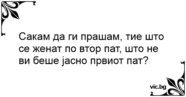 Сакам да ги прашам, тие што се женат по втор пат, што не ви беше jасно првиот пат?