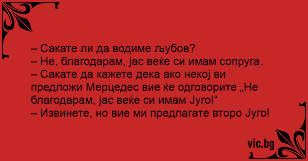 – Не, благодарам, јас веќе си имам сопруга.