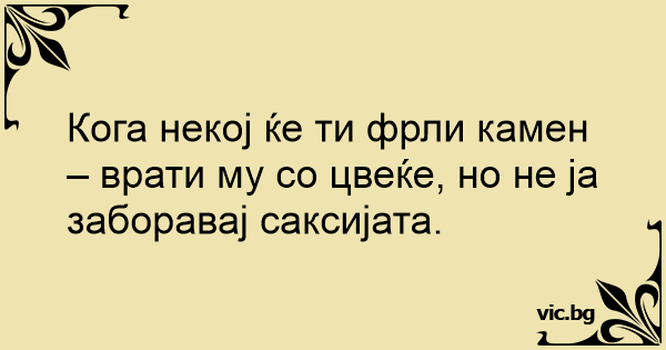 Кога некој ќе ти фрли камен – врати му со цвеќе, но не ја заборавај саксијата.