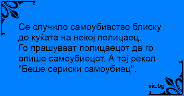 Го прашуваат полицаецот да го опише самоубиецот. А тој рекол "Беше сериски самоубиец".
