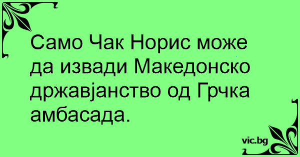 Само Чак Норис може да извади Македонско државјанство од Грчка амбасада.