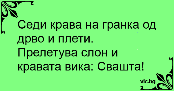 Прелетува слон и кравата вика: Свашта!