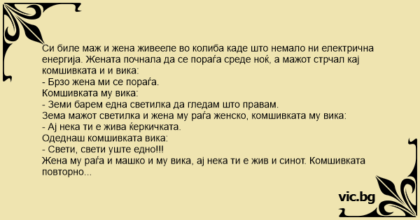 Зема мажот светилка и жена му раѓа женско, комшивката му вика:
