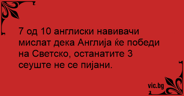 7 од 10 англиски навивачи мислат дека Англија ќе победи на Светско, останатите 3 сеуште не се пијани.