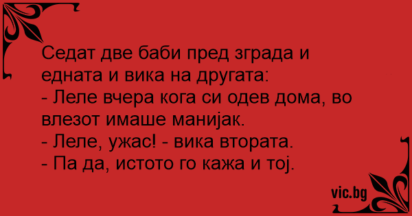 - Леле вчера кога си одев дома, во влезот имаше манијак.