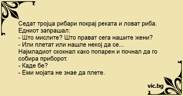 Седат тројца рибари покрај реката и ловат риба. Едниот запрашал: