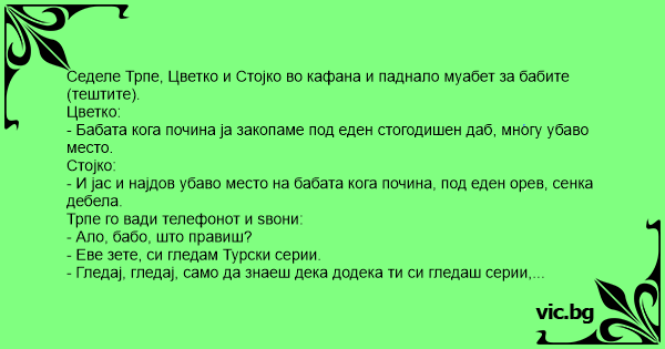 Седеле Трпе, Цветко и Стојко во кафана и паднало муабет за бабите (тештите).