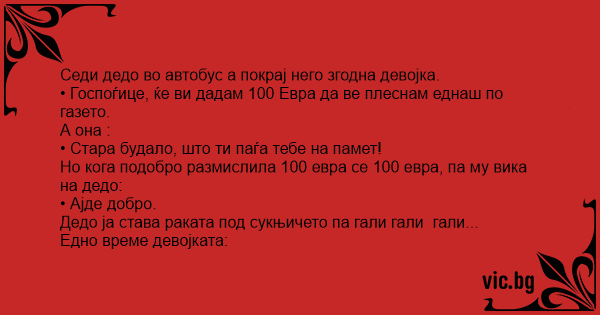 Но кога подобро размислила 100 евра се 100 евра, па му вика на дедо: