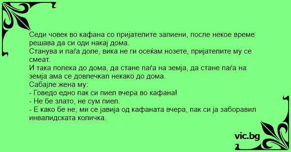 - Е како бе не, ми се јавија од кафаната вчера, пак си ја заборавил инвалидската количка.