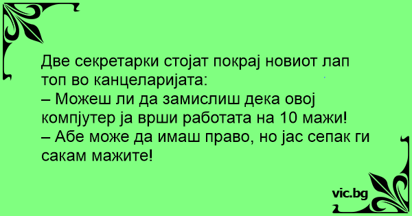 – Можеш ли да замислиш дека овој компјутер ја врши работата на 10 мажи!