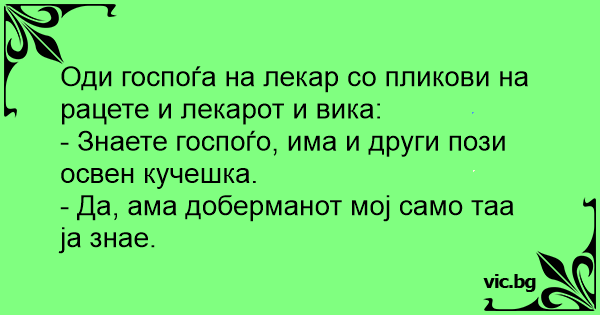 - Да, ама доберманот мој само таа ја знае.