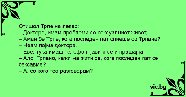 – Ало, Трпано, кажи ма жити се, кога последен пат се сексавме?